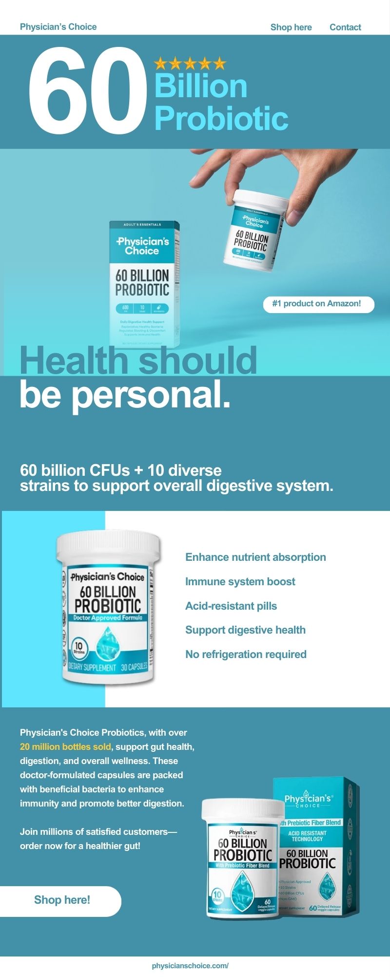 60 billion CFUs + 10 diverse strains to support overall digestive system.